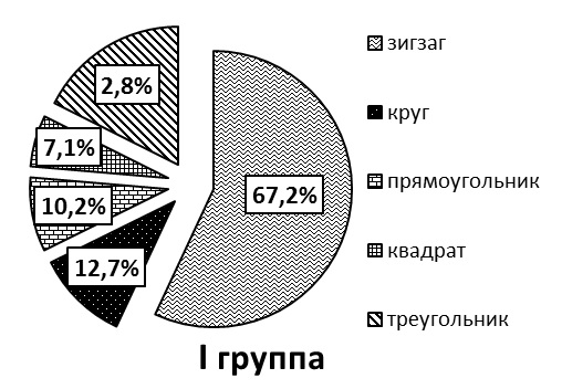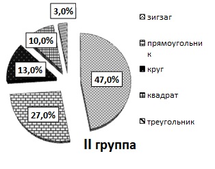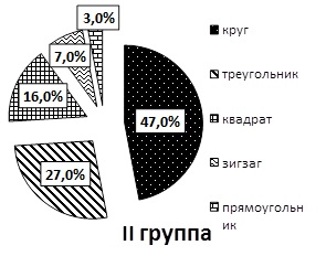 Как следует из данных, представленных на рис. 4, пациенты из обеих групп одинакого часто среди всех геометрических фигур выбирали круг, отвергая зигзаг, при этом больные, перенесшие ИМ, отрицали еще и прямоугольник.