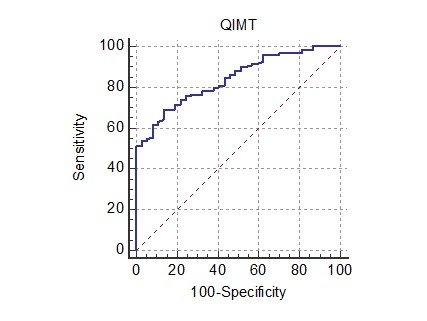Рисунок 1. ROC-кривая определения пороговых значений QIMT в диагностике коронарного атеросклероза у больных ИБС.