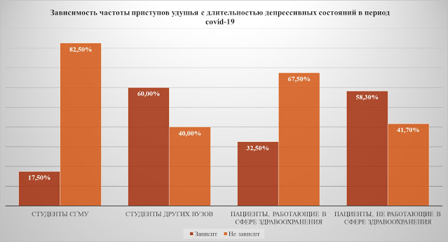 2) Длительность депрессии более выражена у студентов ВУЗов. Респонденты, длительно болеющие БА, с годами становятся более устойчивыми к подавленному состоянию, нежели молодые студенты.