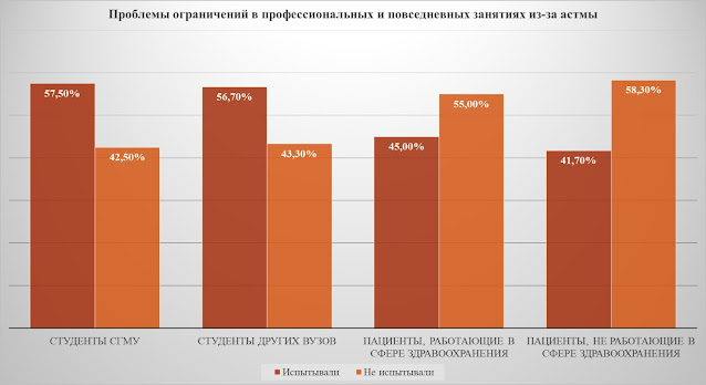 Рис. 8. Проблемы ограничений в профессиональных и повседневных занятиях из-за астмы.